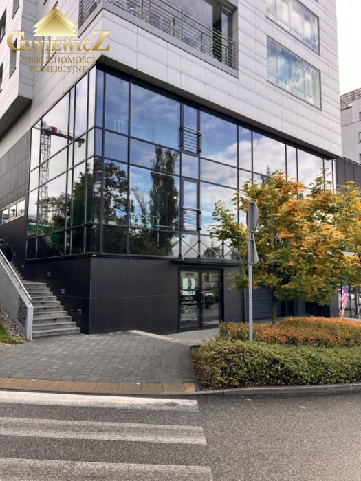 Lokal znajduje się na parterze nowoczesnego budynku z dużymi przeszklonymi witrynami od strony ulicy, zapewniającymi świetną ekspozycję i naturalne doświetlenie wnętrza.